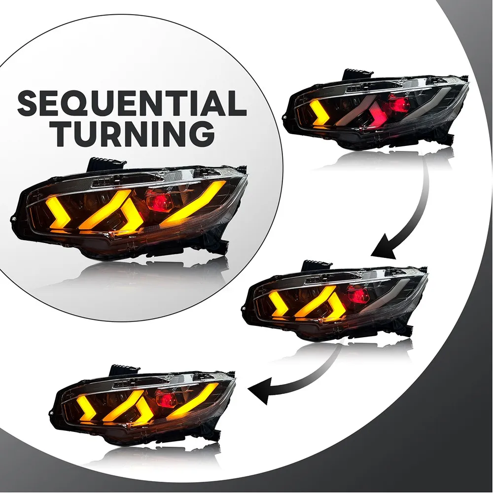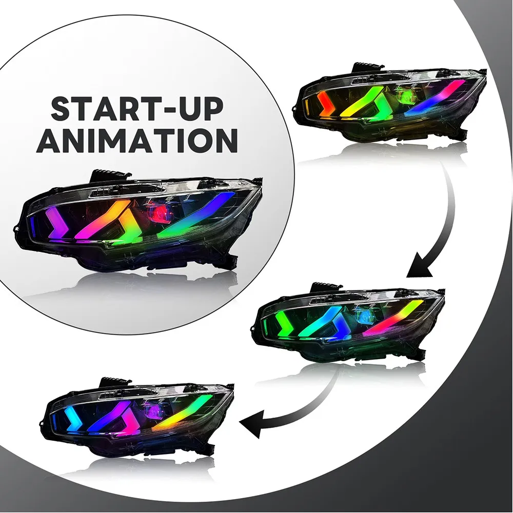 RGB LED Headlight For Honda Civic 10th Gen 2016-2021 Head Lamps Fashion Assembly