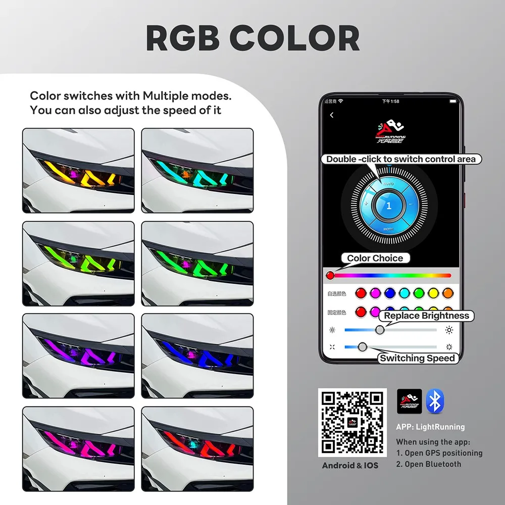 3. Function: DRL(White)+Turn Signal(Yellow)+High Beam(White)+Low Beam(White) lights
