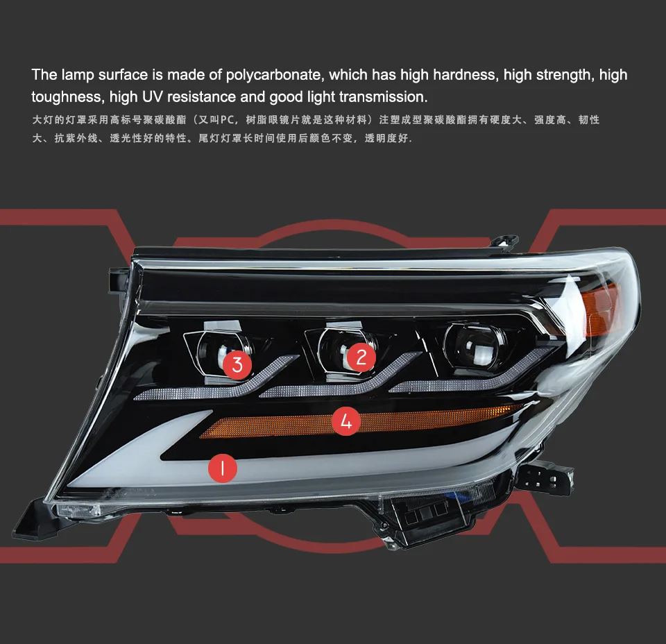 2 PCS Auto Car Head Light Parts For Toyota Land Cruiser 2008-2015 LED Headlight
