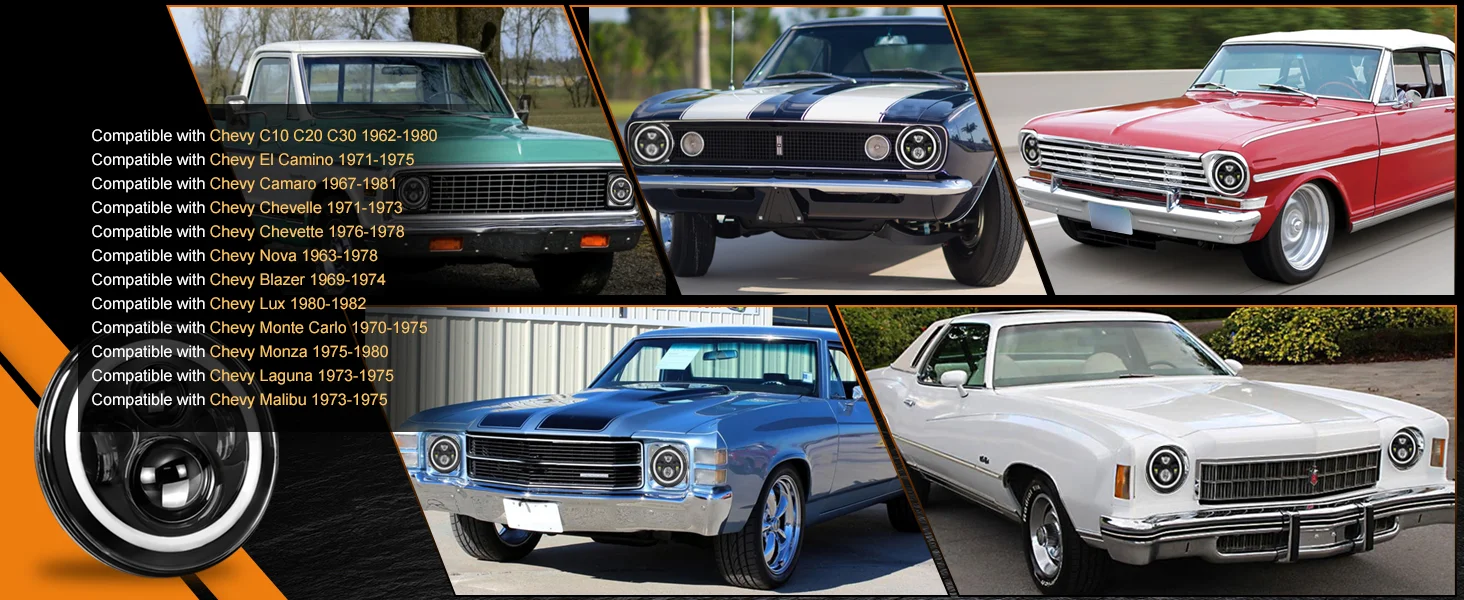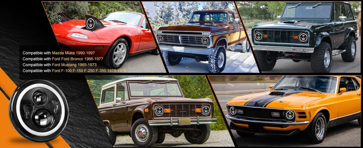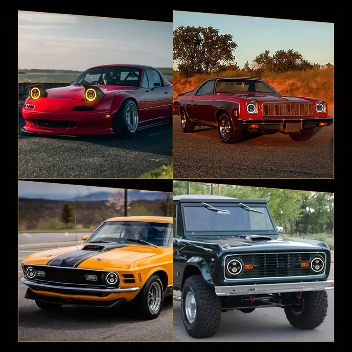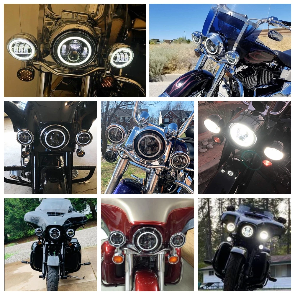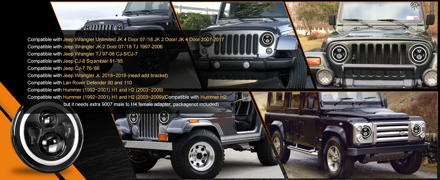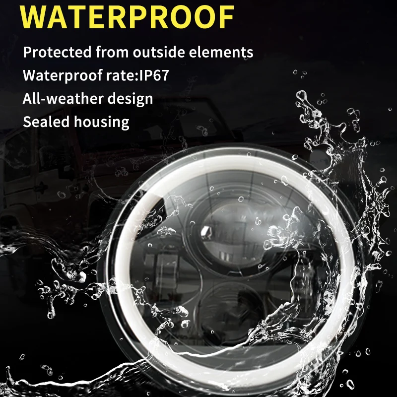7 Inch Round 4 Bulb LED Headlight with Dual Color Angel Eye Design for Jeep Wran