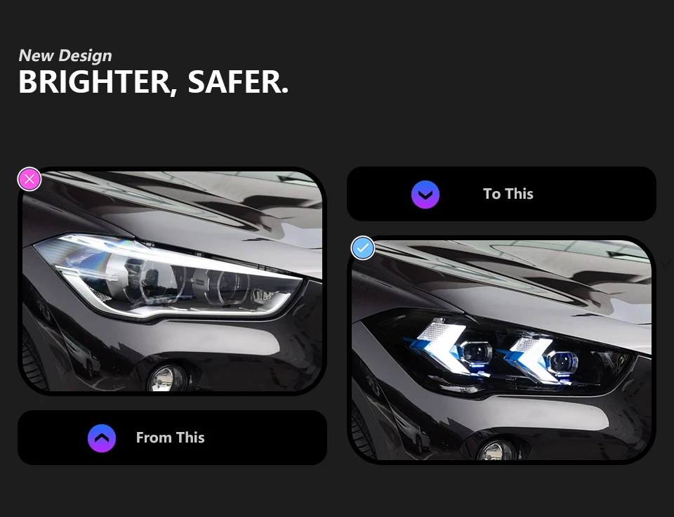 AKD 2PCS Auto Parts For BMW X1 F48 LED Headlights 2016-2023 DRL Turn Signal High