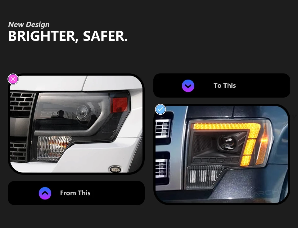 AKD LED Head Light Parts For Ford F-150 Raptor 2008-2014 Front Headlights Replac