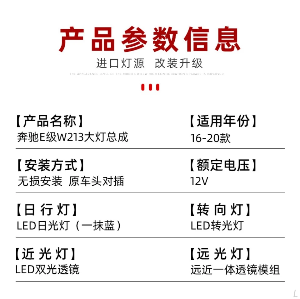Auto Parts For Benz W213 Headlights 2016-2020 E200 latest Styling LED Daytime Li