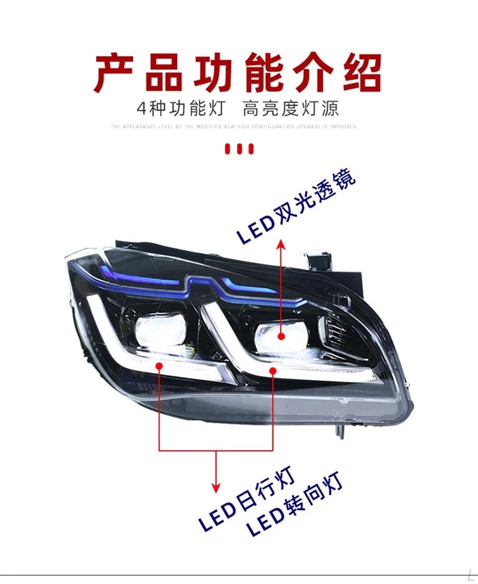 Function: Daytime Running Light,Low beam,High beam,Flashing signal light