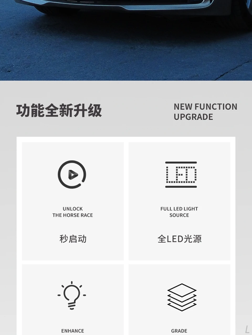 Function: Flashing signal light,Low beam,High beam,Daytime Running Light