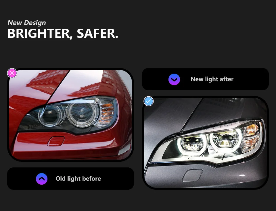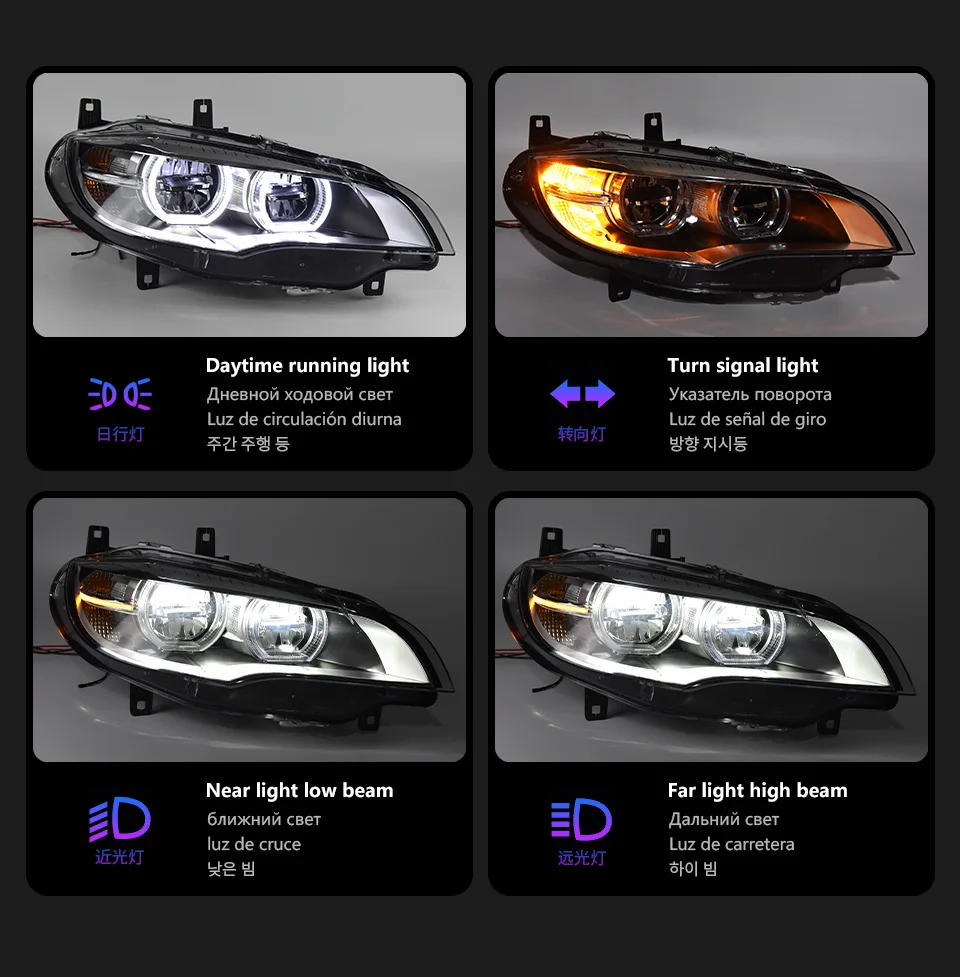Auto Parts For BMW X6 E71 Headlights 2008-2014 latest Styling Angel eye LED Head