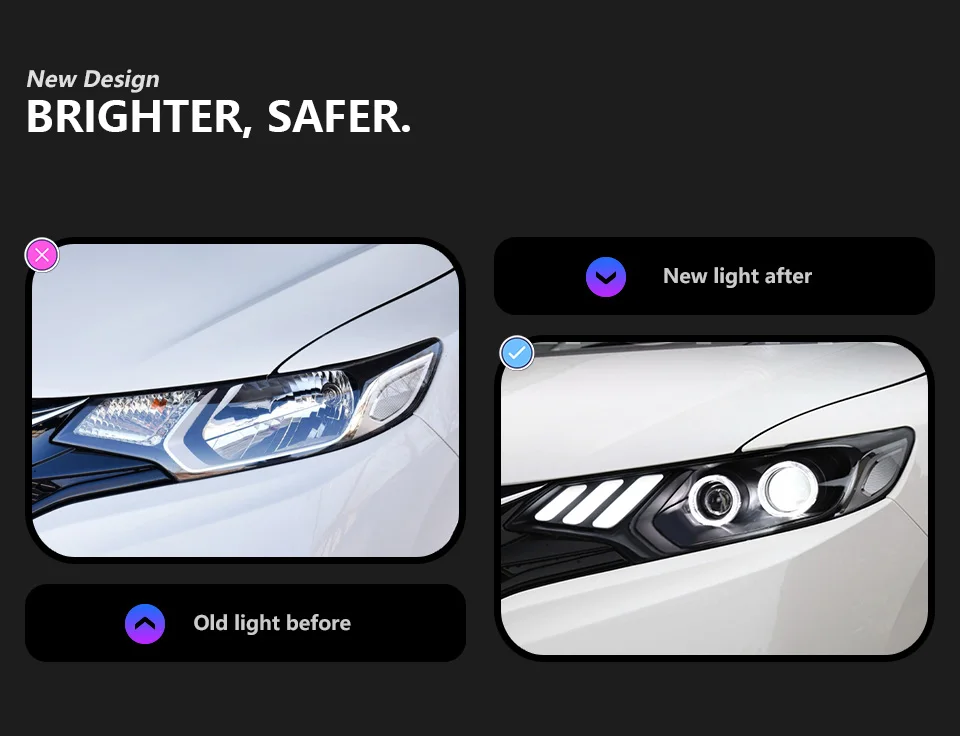 Auto Parts For Honda Jazz Headlights Fit 2014-2020 Mustang Styling LED Daytime L