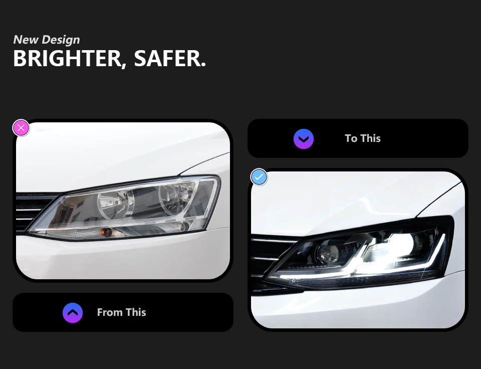 Auto Parts For Jetta MK6 Headlights 2011-2018 Upgrade Styling LED Daytime Lights