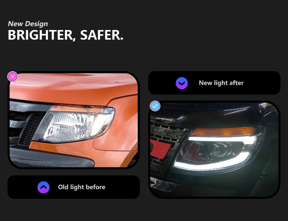 Auto Parts For Ranger Raptor T6 Headlights 2012-2015 Styling LED Daytime Lights