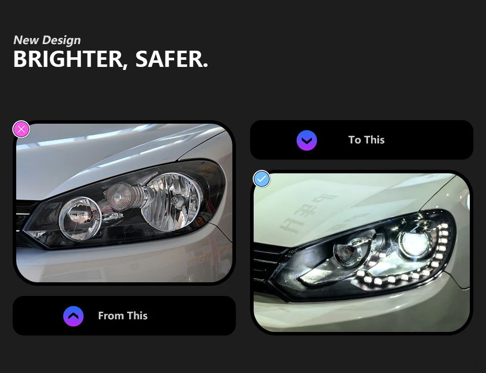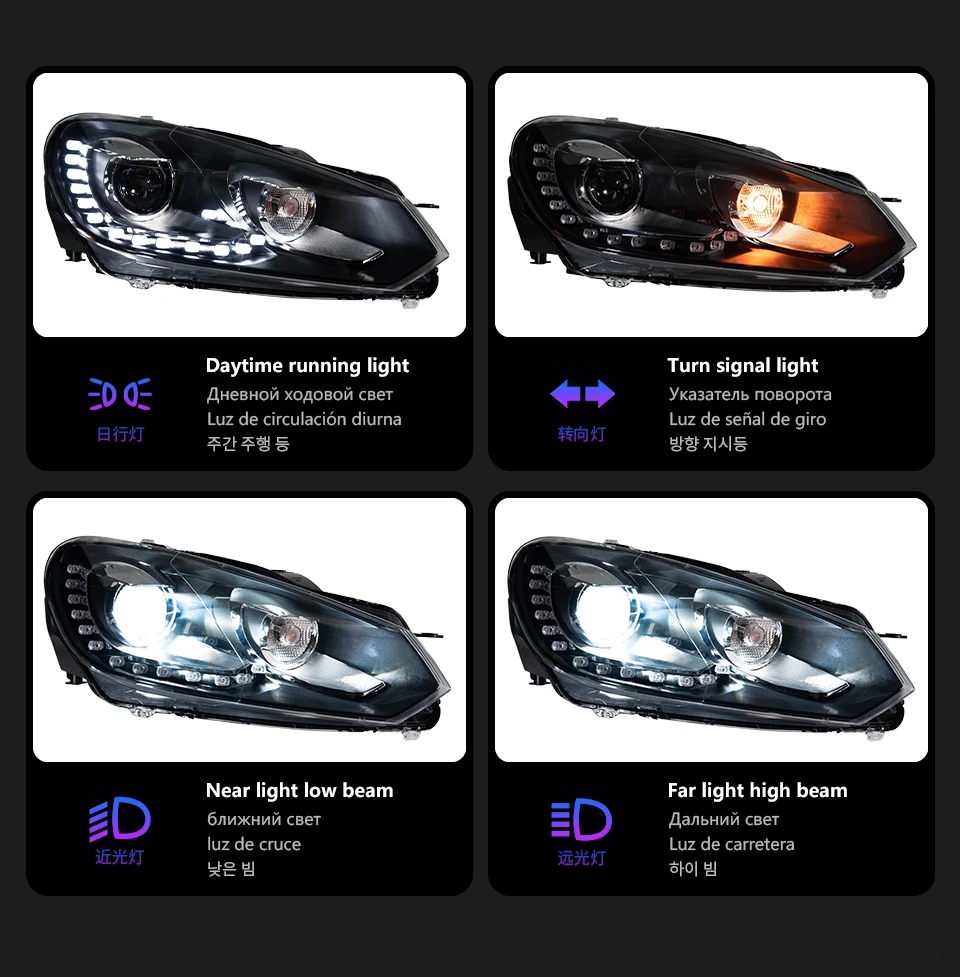Auto Parts For VW Golf 6 Headlights 2009-2012 MK6 R20 Styling LED Daytime Lights