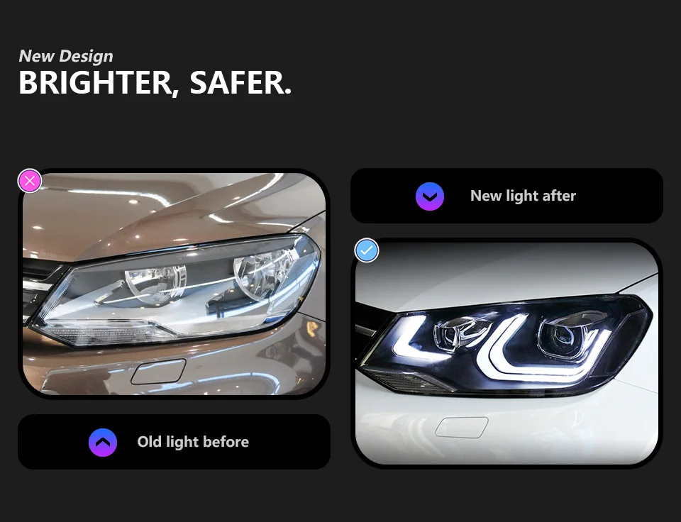Auto Parts For VW Touareg Headlights 2011-2015 latest Double U Style LED Daytime