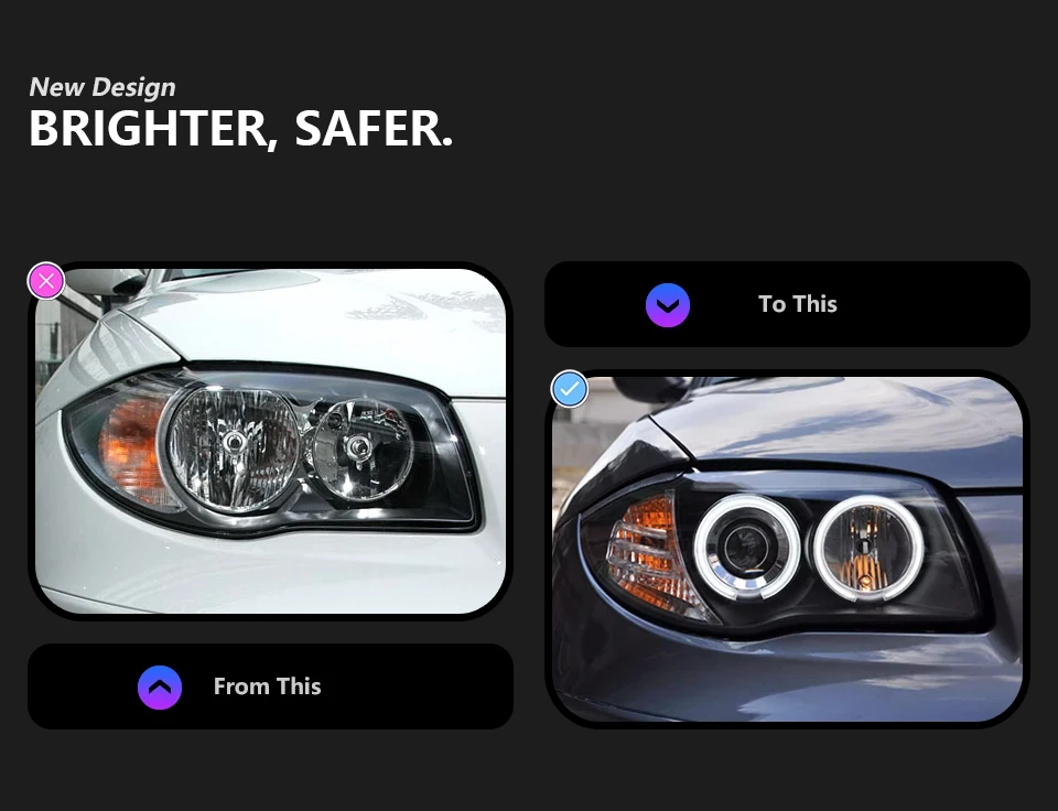 Auto Parts Headlights For BMW 1 Series E87 2004-2011 LED Head Lamp Upgrade Angel