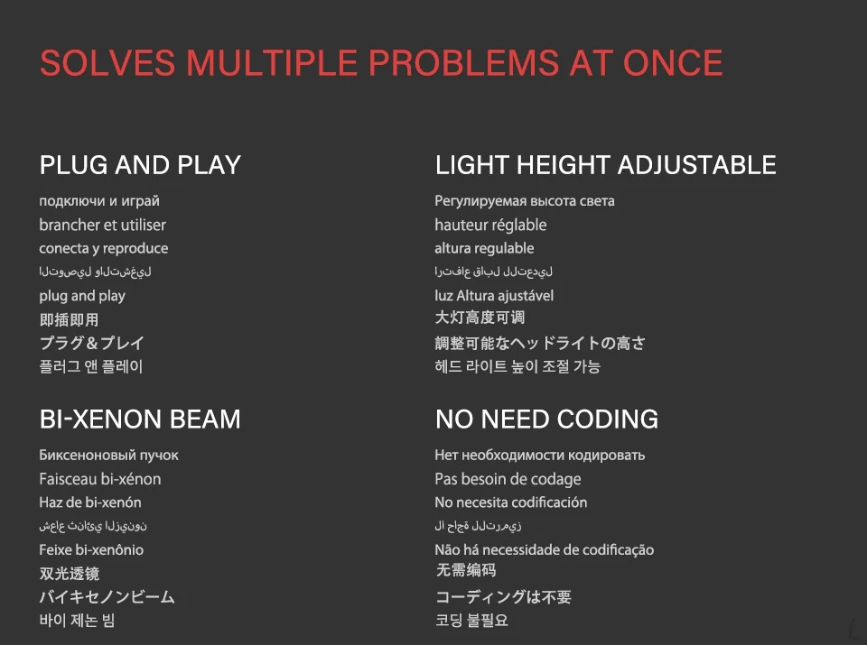 Function: Low beam,High beam,Signal Lamp,Start Animation,Daytime Running Light