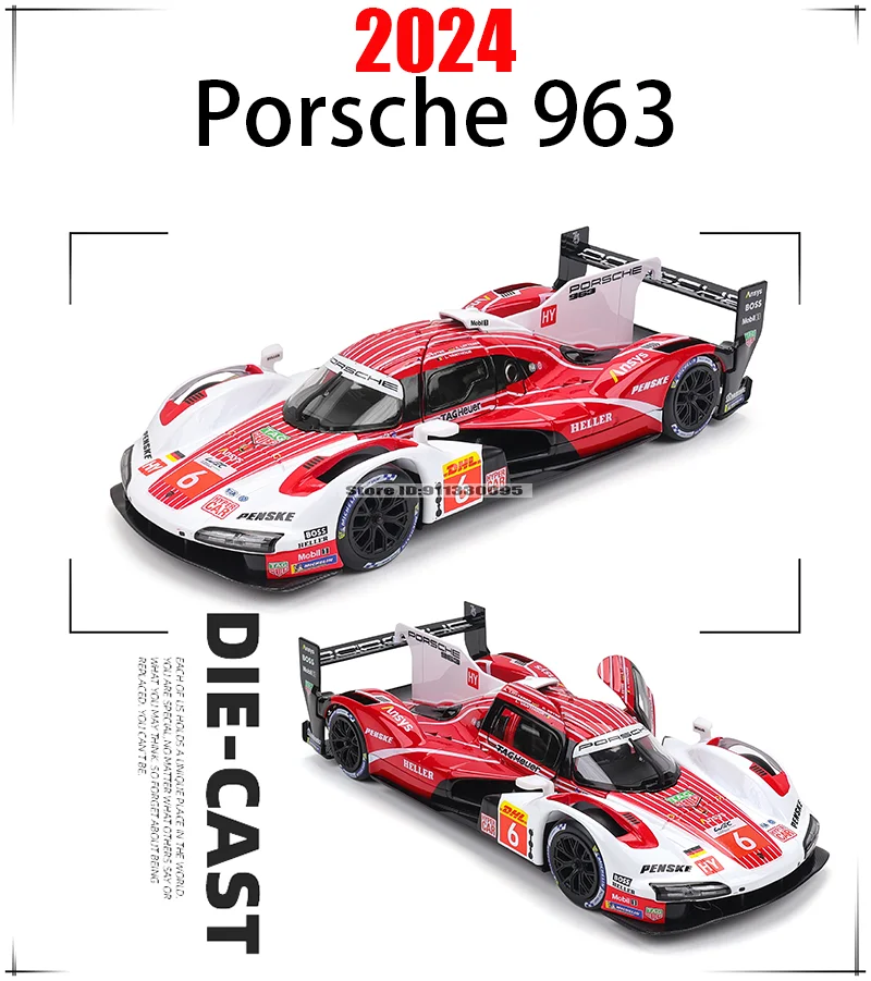 Bburago 1:24 Porsche 963 24 alloy racing car Alloy Luxury Diecast Car Model Toy