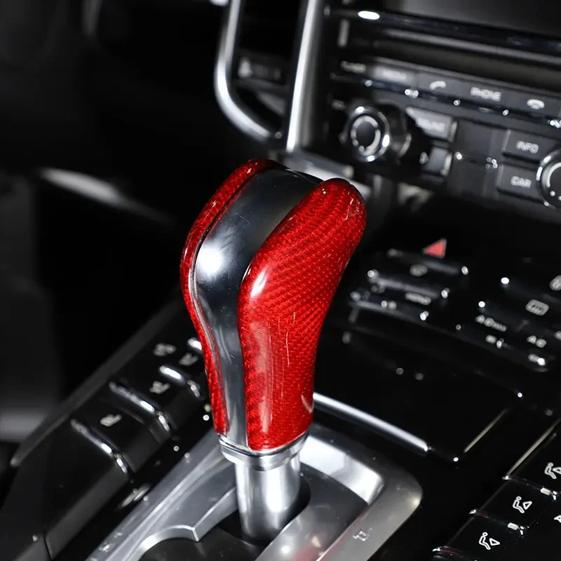 Car Styling Red Carbon Fiber Gear Shift Head Cover Sticker For Porsche Cayenne 2