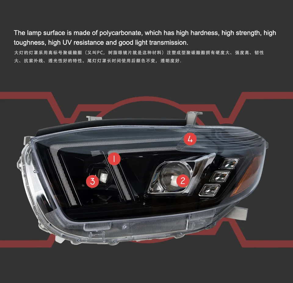 Headlight For 2009 Toyota Highlander Kluger Head Lights Style Replacement DRL Da