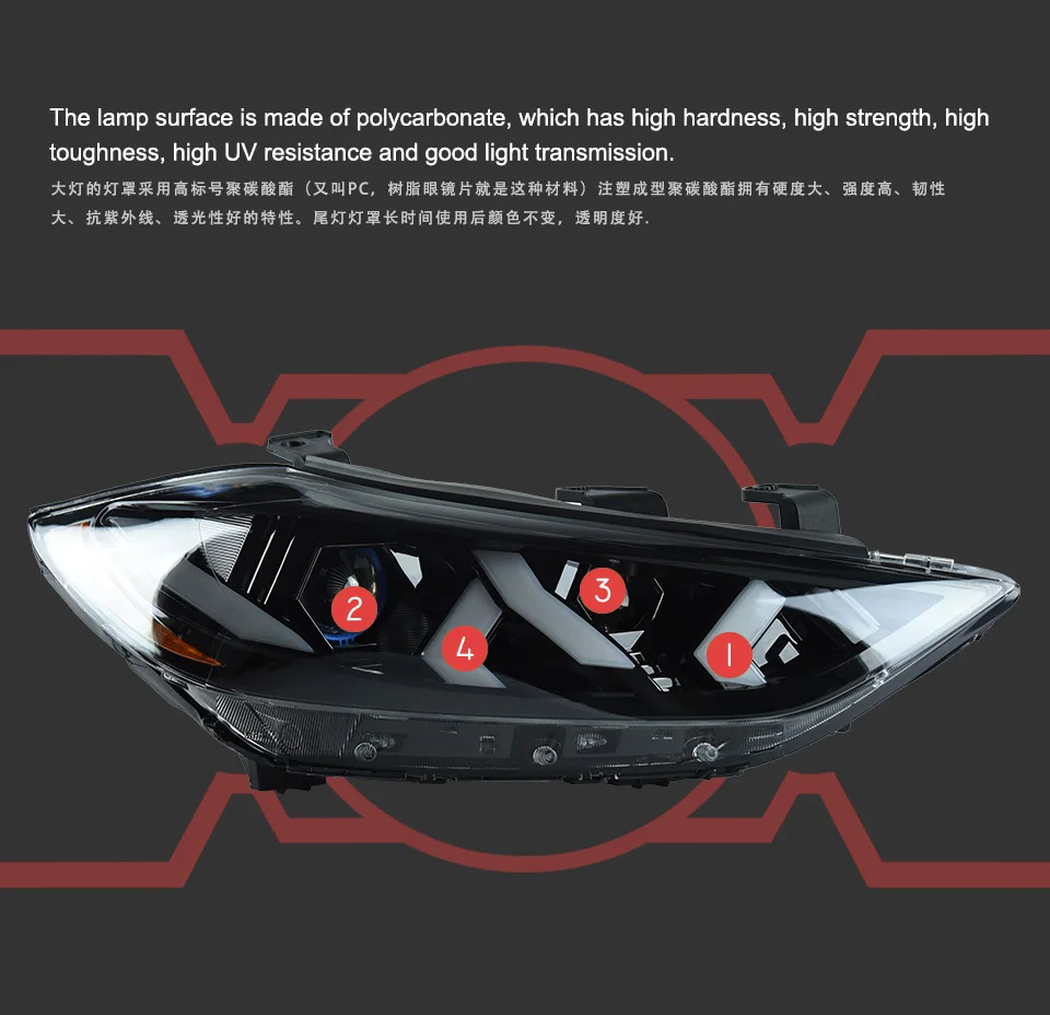 LED Head Light Parts For Elantra 2016-2020 Front Headlights Replacement Lamborgh