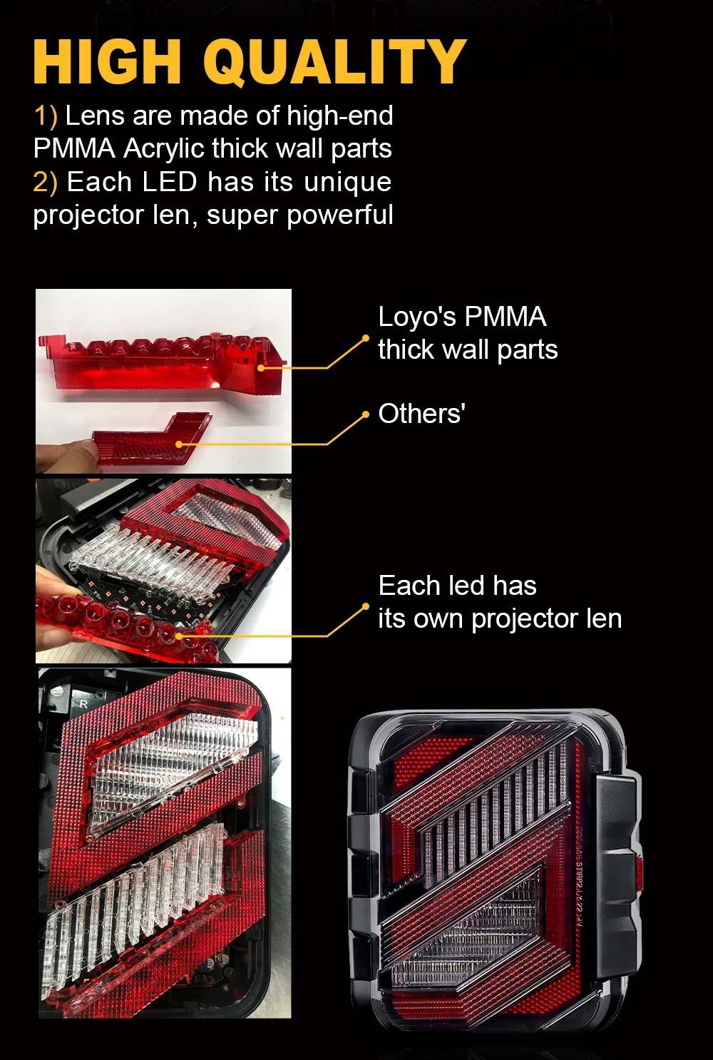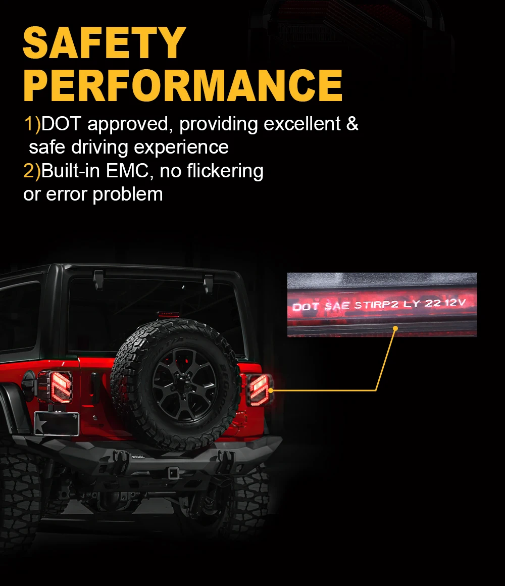 3.Extremely Bright Illumination - Upgraded wrangler jl LED rear tail lamp is brighter than stock halogen light,providing outstanding illumination and driving safety