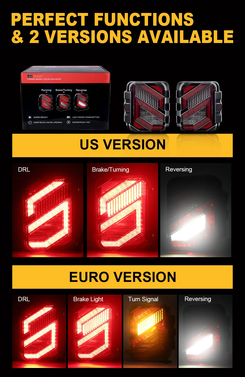 5.Function: Reverse light, Brake light, Turn signal, Daytime running light