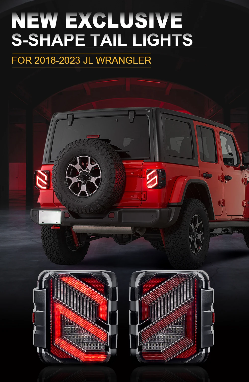 1.Exact OEM Fit - These 2023 Newest Designed rear tail lights are made exclusively for 2018 - 2023 Jeep wrangler JL (ONLY fit JL with stock halogen tail lights, NOT include blind spot sensor)