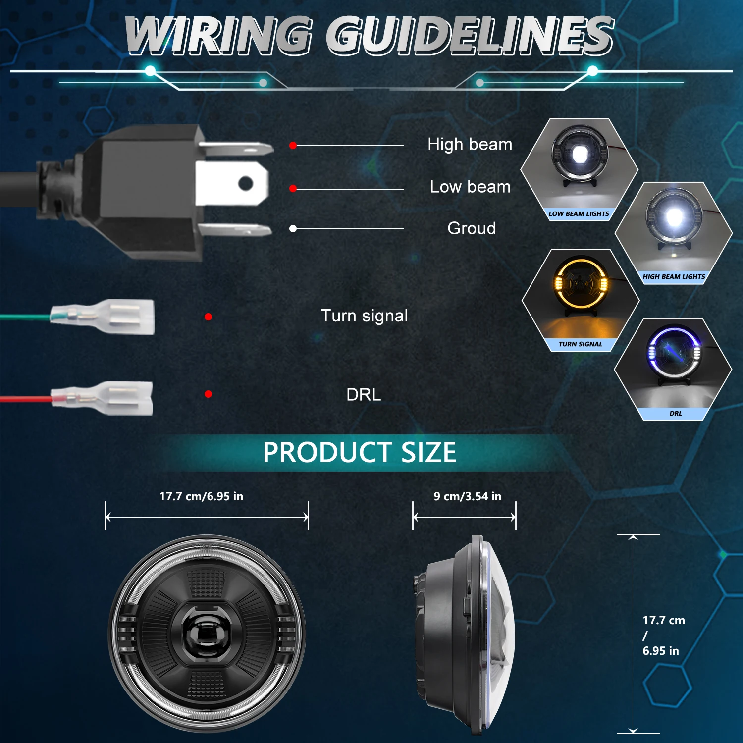 Not only suitable for Wranglers, but also for various motorcycles with 7-inch round lights, as well as some vintage cars, sports cars, and sedans. Please confirm the size of the installation holes for your beloved vehicle before purchasing