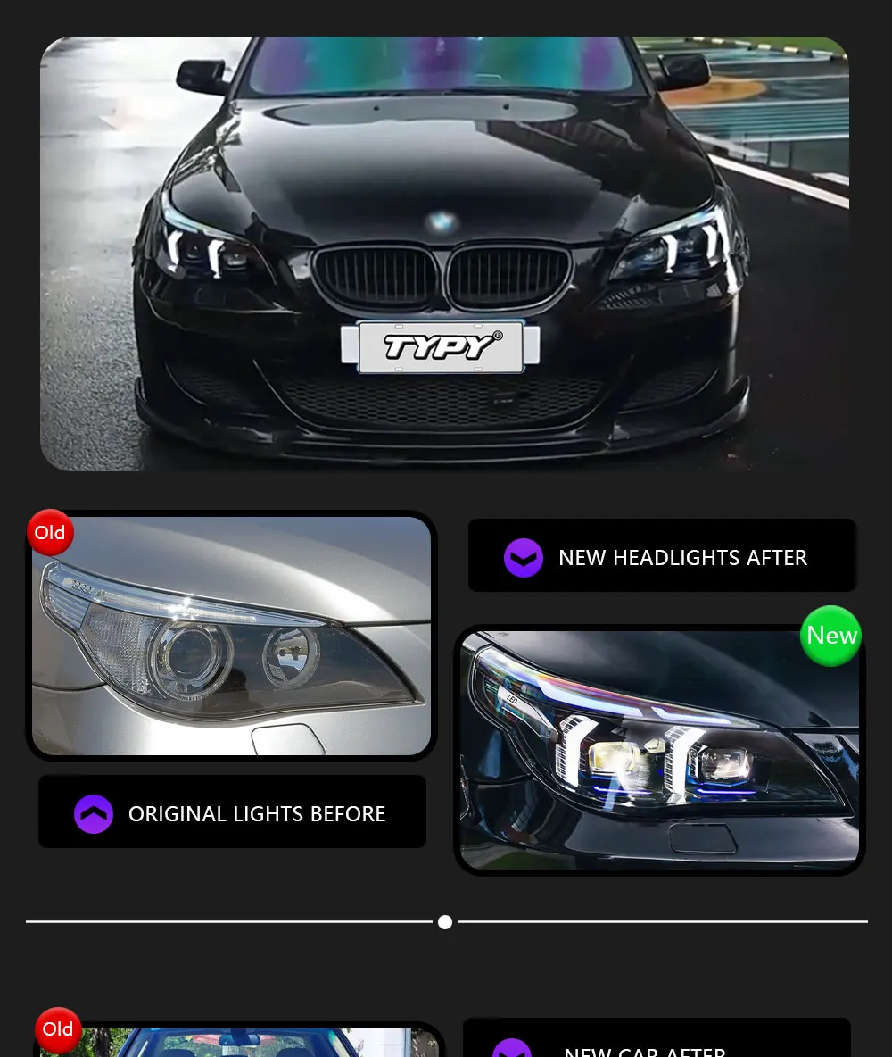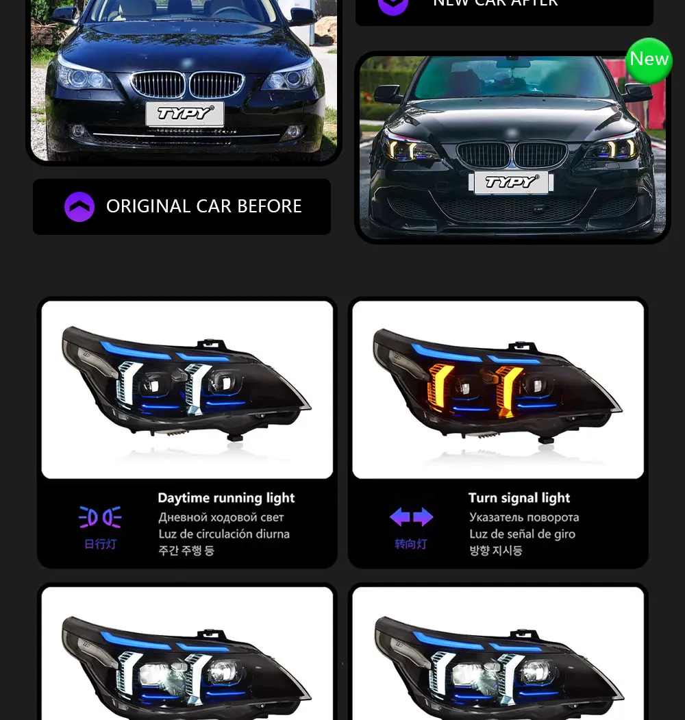 TYPY Car For BMW 5 Series E60 Headlight 2003-2010 Upgrade Modified to New DRL Dy