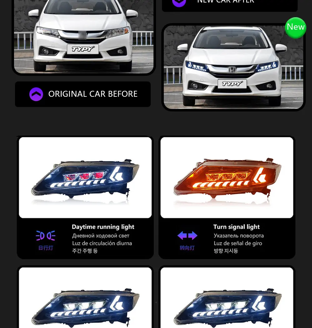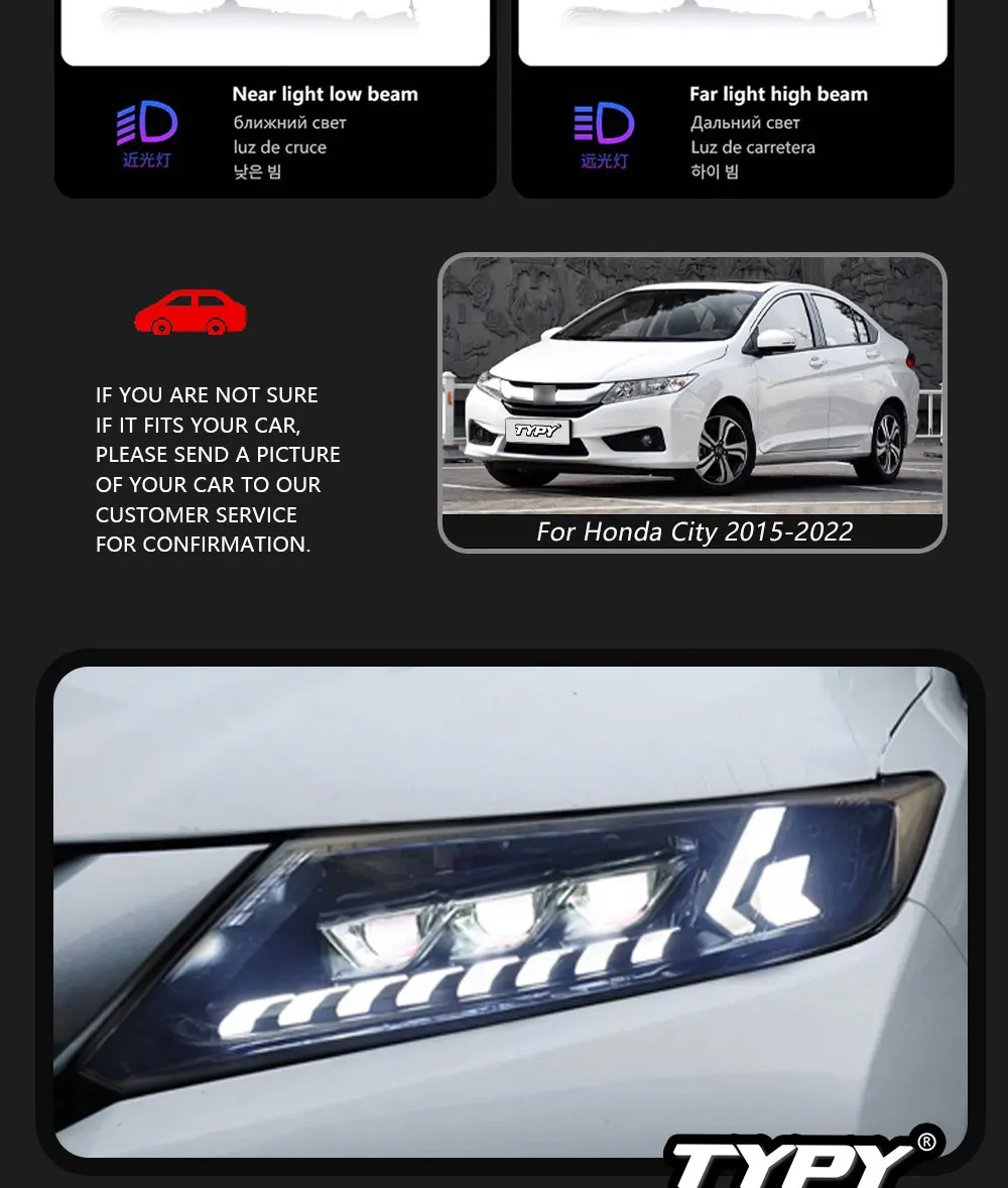 TYPY Car For Honda City Headlight 2015-2022 Upgrade Modified to New DRL Dynamic