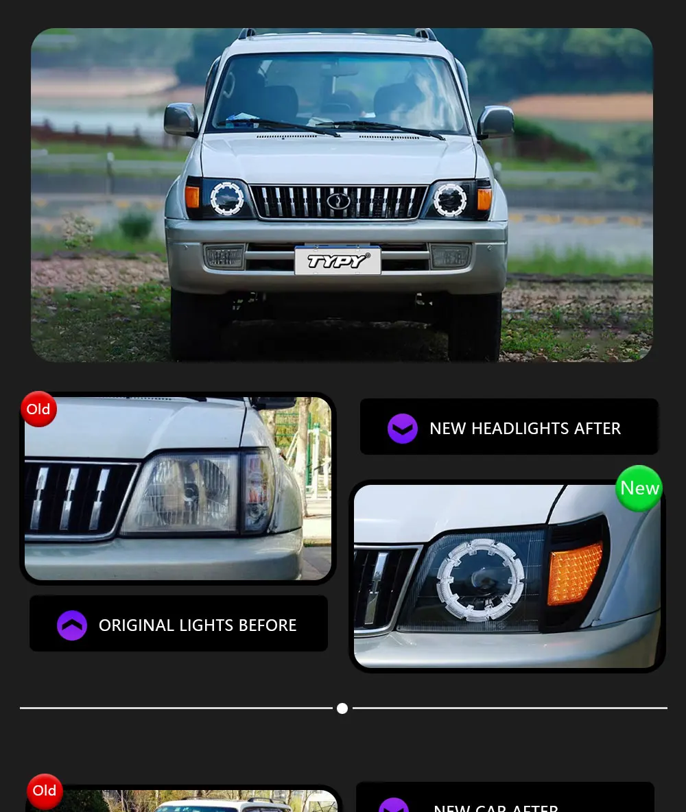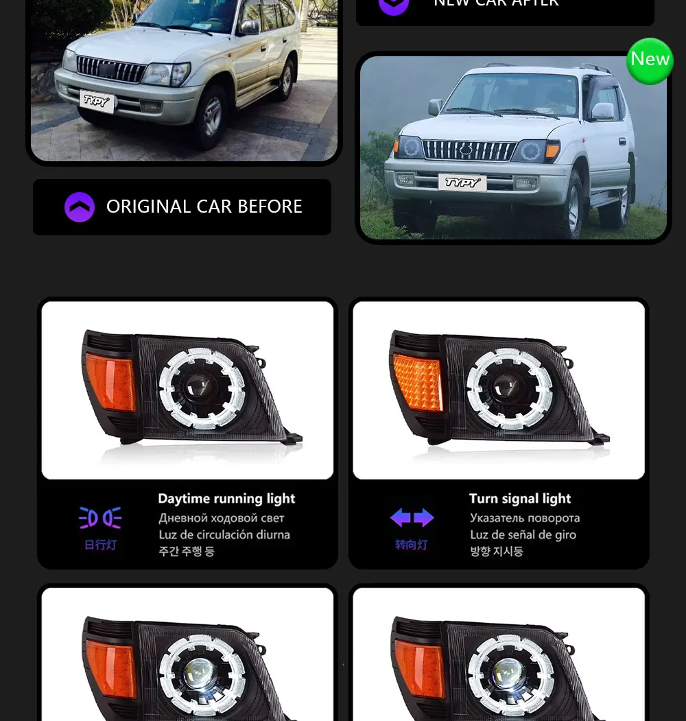 TYPY Car For Toyota Prado LC95 Headlights 1996-2002 Upgrade Modified New DRL Dyn