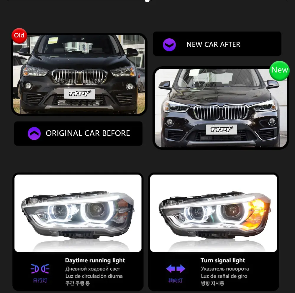 TYPY Car Headlights For BMW X1 F48 2016-2020 LED Car Lamps Daytime Running Light