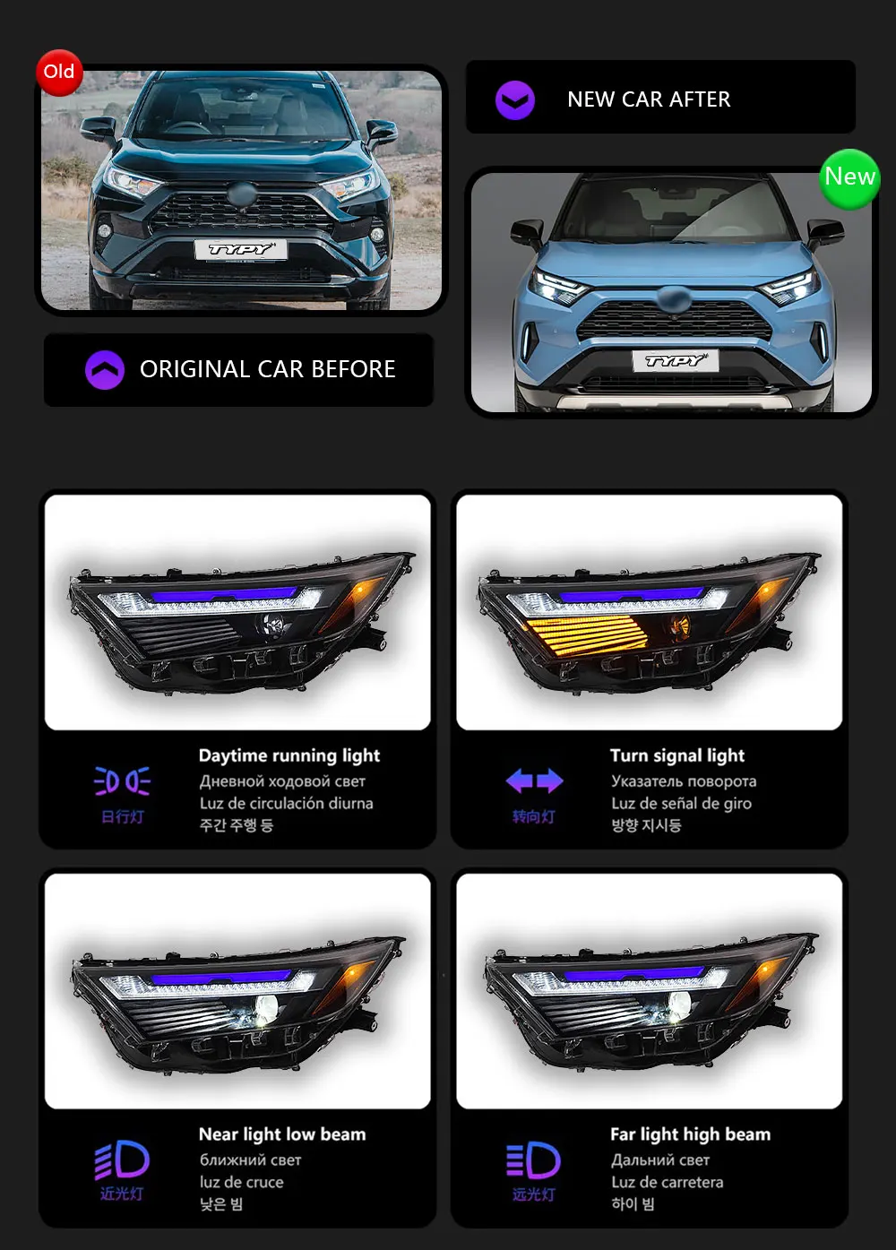 TYPY Car Lights For Toyota RAV4 Headlight 2020-2024 LED Projetor head Lamp Dayti
