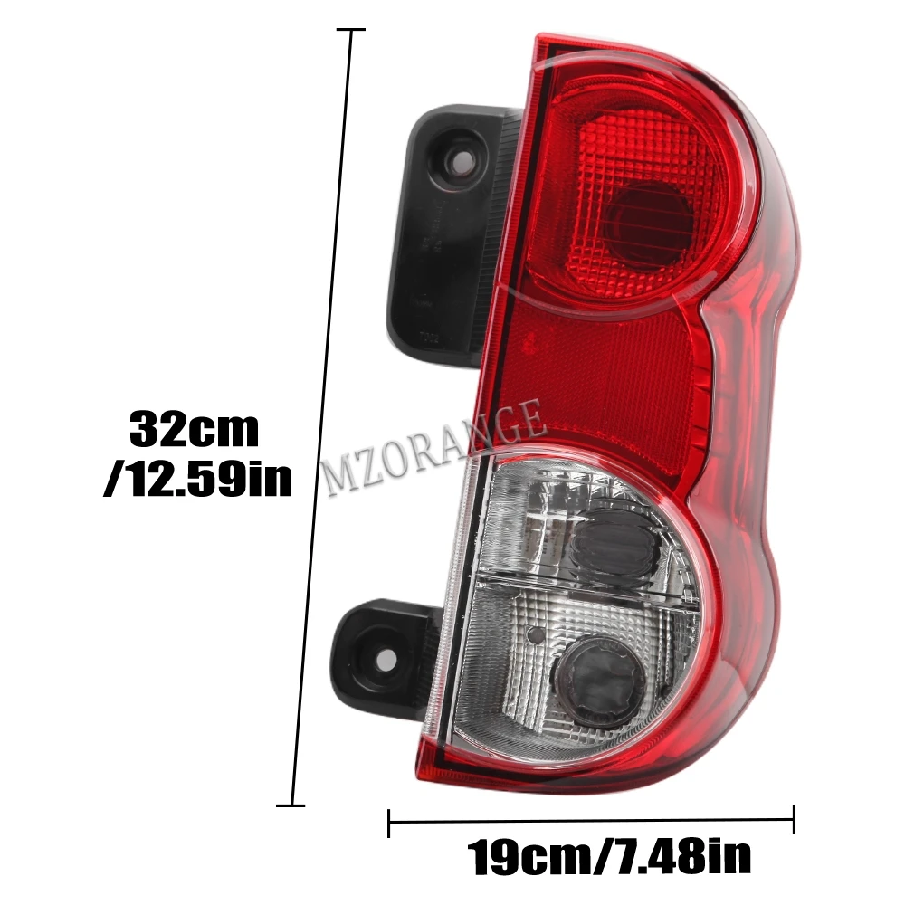 Features:1. New Left/Right Tail Light Brake Lamp.2. Dust and Moisture for PROTECTION.3. Durable and long service life.4. A perfect aftermarket replacement.5. Easy installation.Direct replacement.6.OEM:26550-JX00A 26555-JX31ASpecification:- Placement on Vehicle: Rear, Left/Right- Material: Arcylonitrile Butadine Styrene(ABS)- Lens Color: Red+Clear- Voltage: 12V- Wire Harness Included: No- Bulb Included: No- Size: 32 x 19 x 12cm- Distance of Two Holes: 22cmFitment:Fits for NISSAN NV200 2009+.----[This Product Is For Aftermarket Replacement,Not The Original Product. There Is Dimensional tolerance, Please Understand!!!]Just for reference,Pls confirm the product's light holes if they matche your car before you purchase.Package Included:1 x Tail Light(Left/Right)Note:Wire Harness and Bulb are not included!68.78