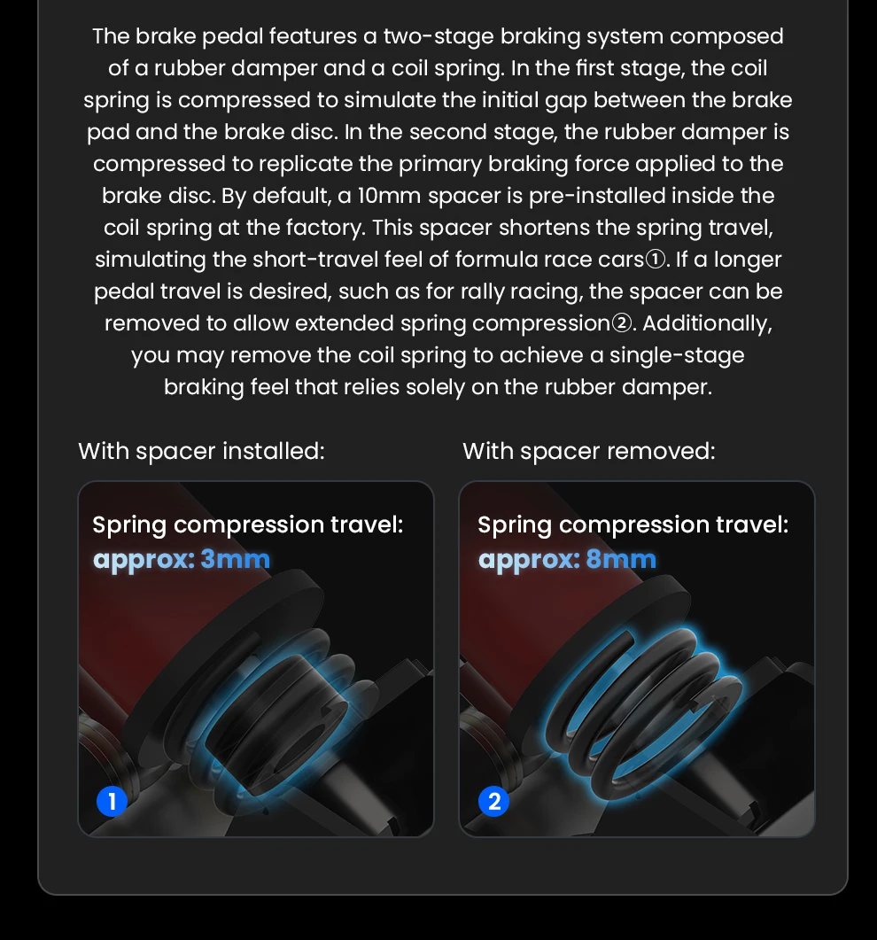 --Hydraulic Buffer System:The hydraulic rod smooths pedal press and rebound, ensuring stable and realistic racing feedback.