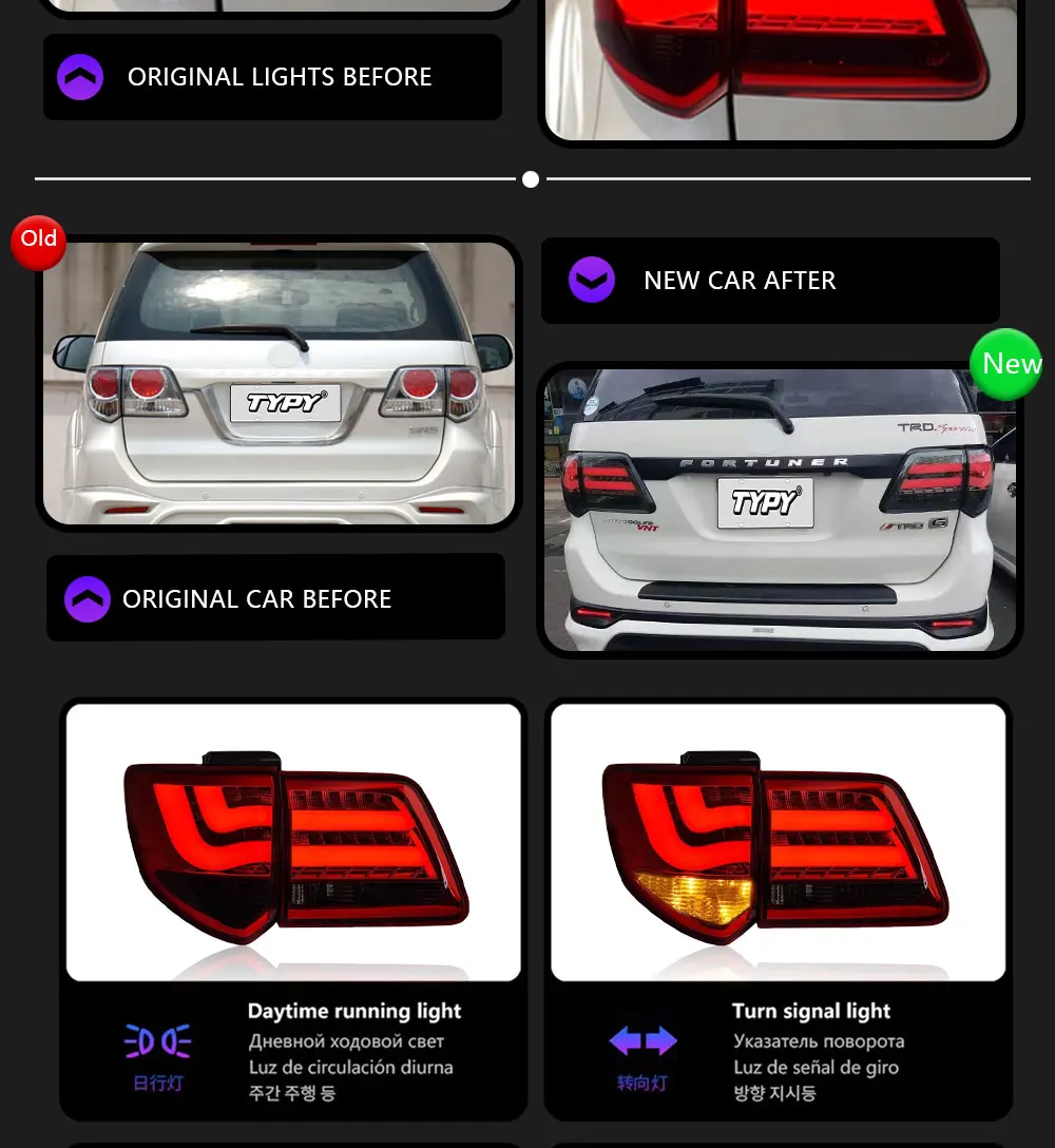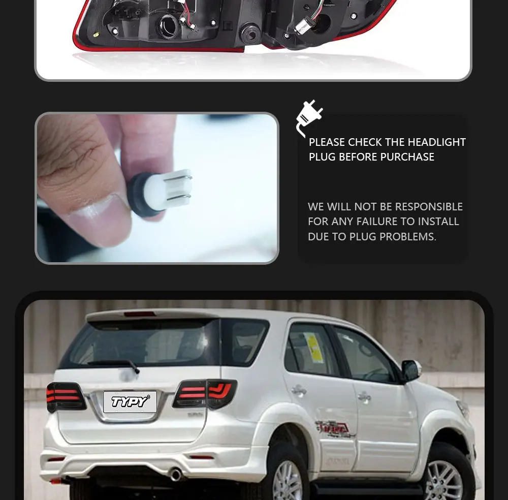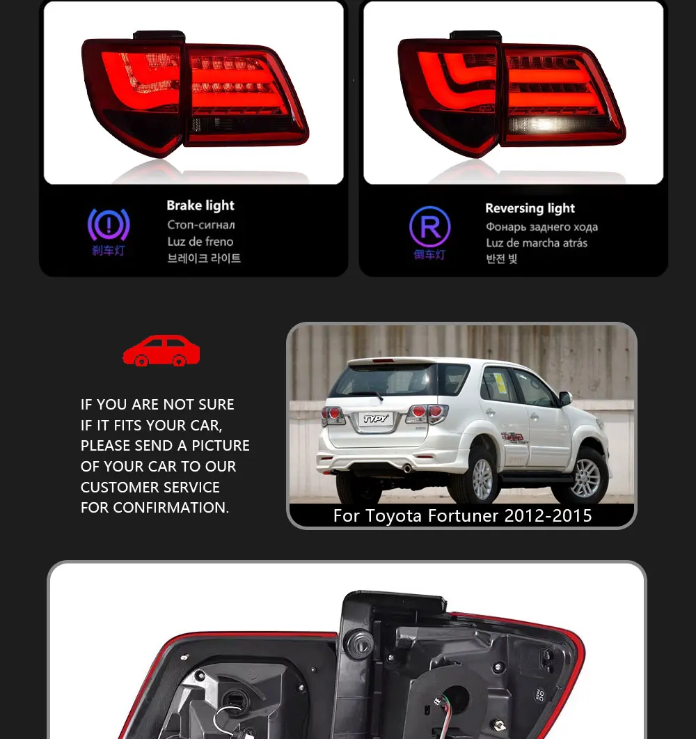 TYPY Car Accessories LED Tail Lamps Assembly For Toyota Fortuner 2012-2015 Rear